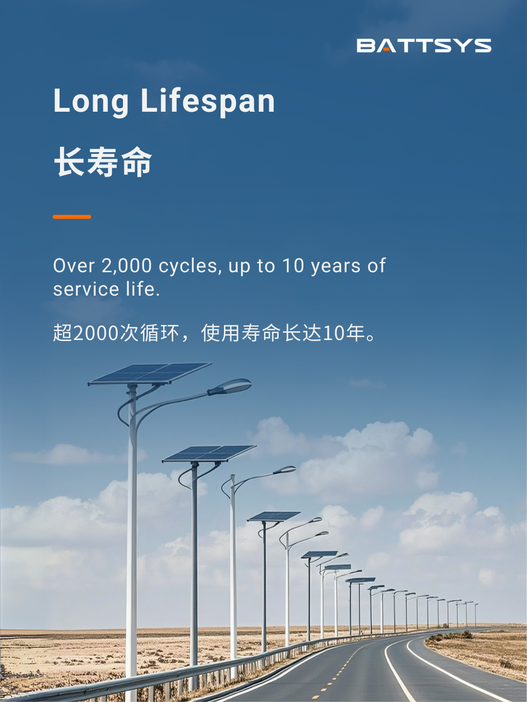 5年保质期,10年使用寿命,3500+周循环,智能BMS,免维护。
