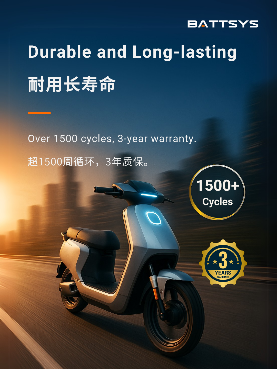 5年保质期,10年使用寿命,3500+周循环,智能BMS,免维护。